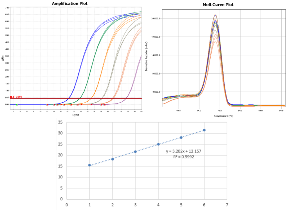 用cDNA按5的倍數(shù)稀釋5個(gè)梯度,用Magic qPCR Master Mix (Probe)進(jìn)行擴(kuò)增分析