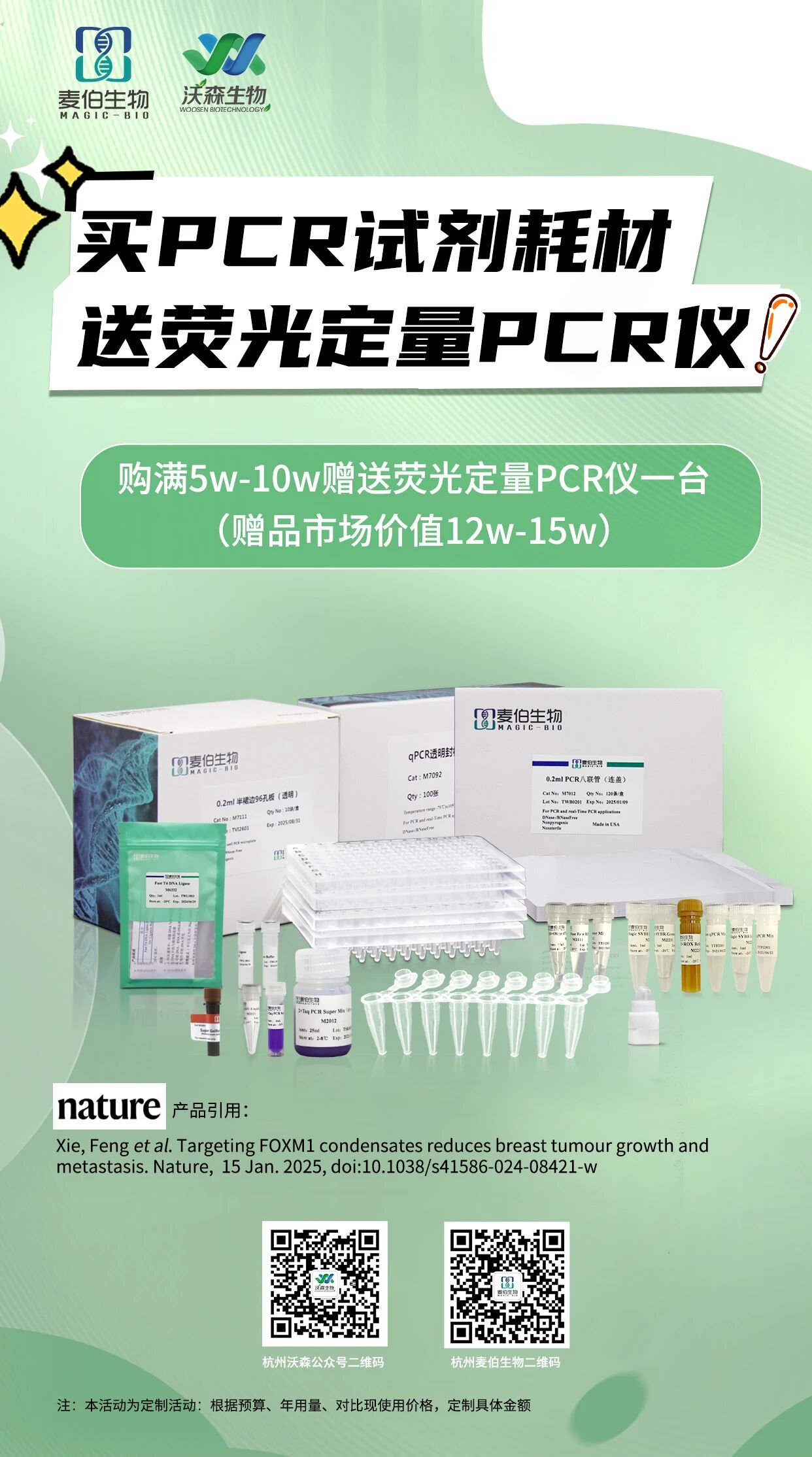 我們?yōu)槟鷾?zhǔn)備了一份輕松體驗(yàn)完整qPCR工作流的優(yōu)惠活動(dòng)—“買(mǎi)PCR試劑耗材免費(fèi)獲取一臺(tái)熒光定量PCR儀”,希望能助您更簡(jiǎn)單、更經(jīng)濟(jì)地組建自己的理想實(shí)驗(yàn)配置!
