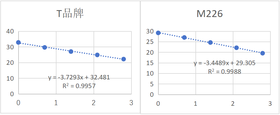 用cDNA按5的倍數(shù)稀釋5個(gè)梯度,用Magic qPCR Master Mix (Probe)進(jìn)行擴(kuò)增分析